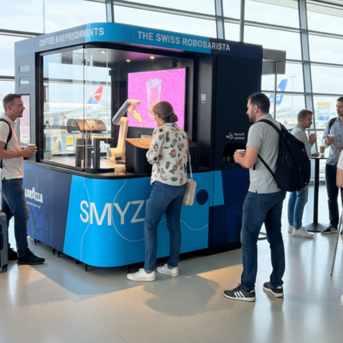 Am internationalen Drehkreuz des Flughafens Schiphol Amsterdam begrüsst unser Robobarista Reisende aus aller Welt mit einem Moment voll Kaffeegenuss. Zwischen Ankünften, Abflügen und dem geschäftigen Treiben eines der grössten Flughäfen Europas liefert Schweizer Technologie frischen Kaffee mit einem Hauch von Amsterdams globalem Geist.